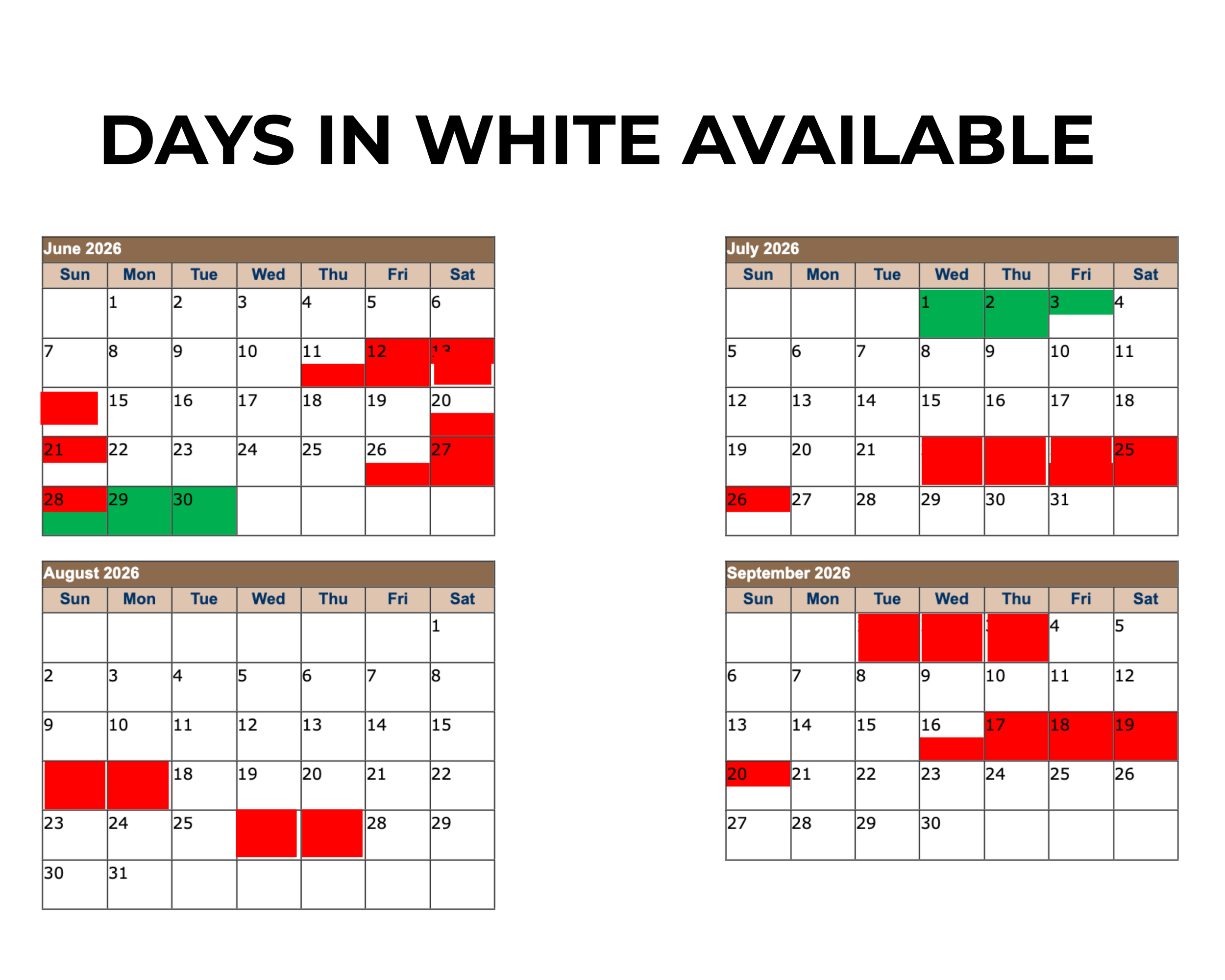SEVERAL SUMMER DATES STILL AVAILABLE!