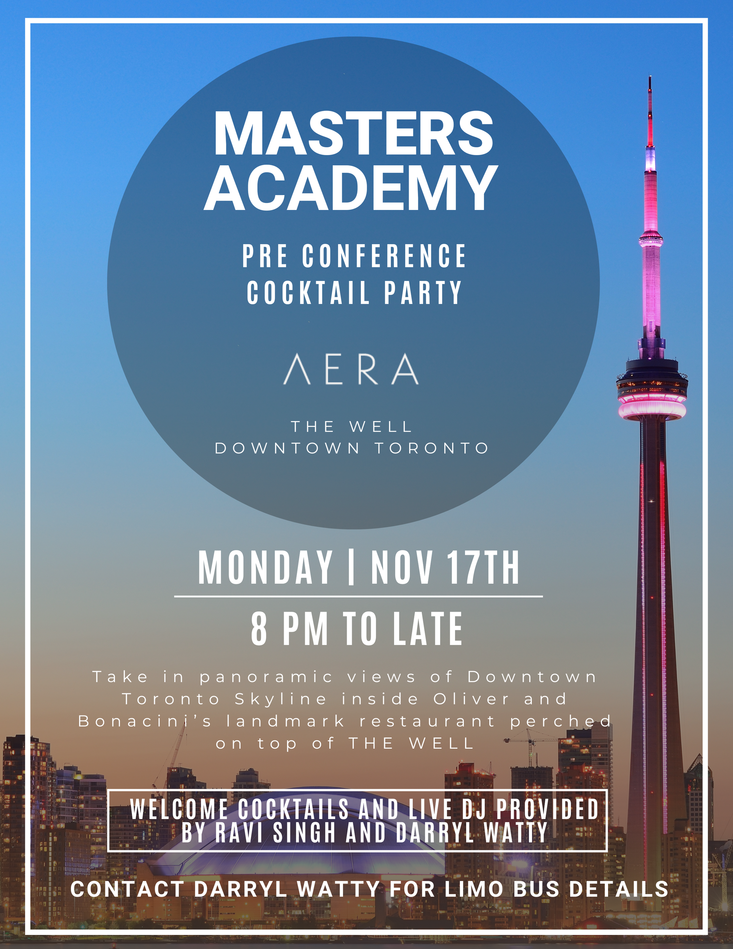 Please join us to kick off RRi Conference Week on Monday November 17th inside Aera Resto Lounge. This is arguably the best views of Dowtown Toronto’s Skyline. Inside the new 8 acre master planned community.